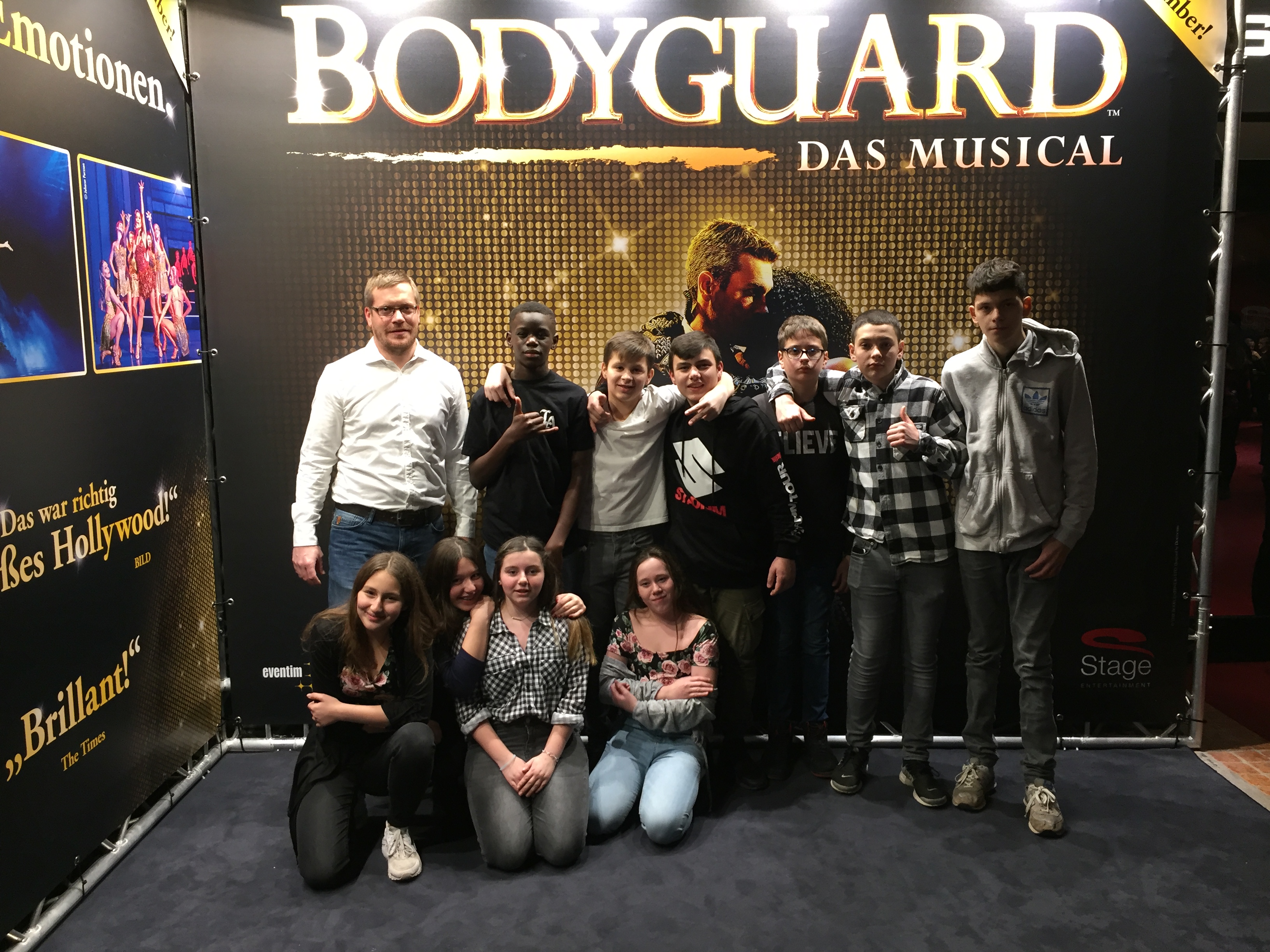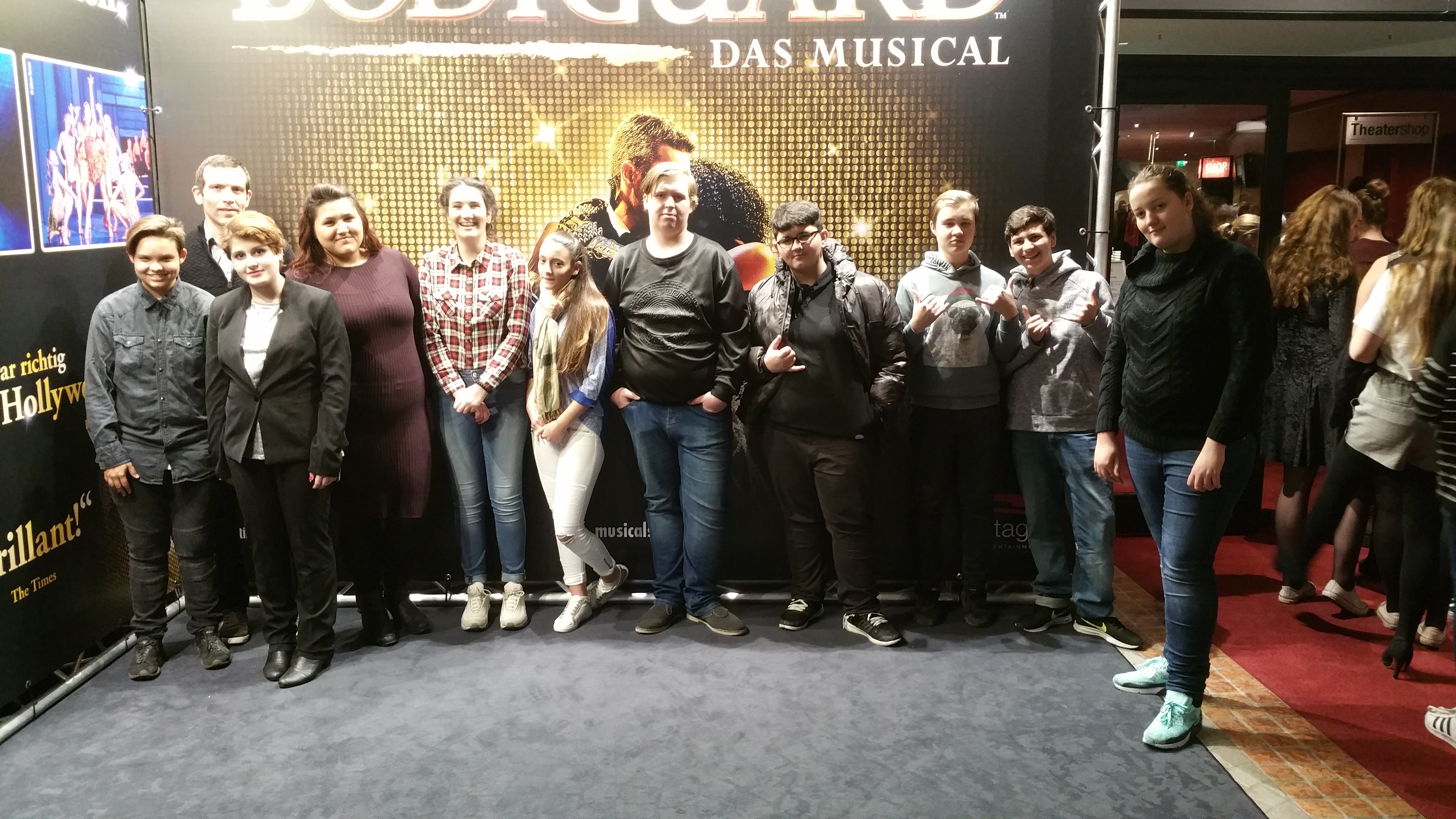 Am 05.12.2017 machten sich die Klassen 6/7 und 8/9 ein vorgezogenes Weihnachtsgeschenk. Gemeinsam besuchten wir eine Vorstellung des Musicals "Bodyguard" im SI-Centrum in Stuttgart. Vereinzelt "in Schale geworfen" trafen sich alle in Kornwestheim am Bahnho und fuhren nach Stuttgart.